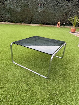 Mesa centro cromo y cristal ahumado