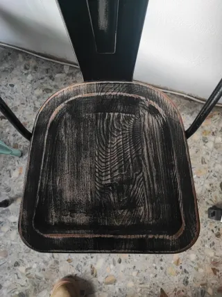 Se vende taburete de estilo Tolix. Es de metal negro con asiento de madera. Nuevo, ideal para una cocina o una barra. - Asientos cuadrados de madera. - Respaldo bajo. (Se vende porque compre 4 pero tengo poco sitio, sin utilizar)