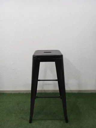 Taburete tolix color negro de estilo industrial. - Asiento cuadrado. - Patas con refuerzos. - Precio: 25€ la unidad.