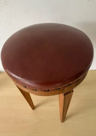 Este taburete vintage es un toque retro para cualquier espacio. Su diseño compacto lo hace versátil. t - Base redonda. - Tapizado en piel sintética. -tengo dos unidades. precio por unidad.