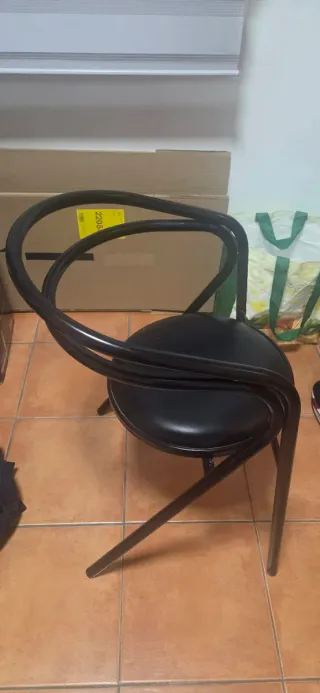 Preciosa silla de estilo vintage. Es de metal y tiene un diseño elegante y sencillo. Ideal para darle un toque retro a tu hogar. - Estructura resistente. - Acabado en negro mate. - Patas ligeramente curvadas. las vendos las 4 juntas alguna puede tener algun rasguño pero facil de pintar negociable