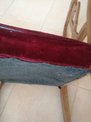 Antigua silla de madera de castaño de dormitorio, con la tapicería de terciopelo granate original Mobiliario, muebles, vintage.