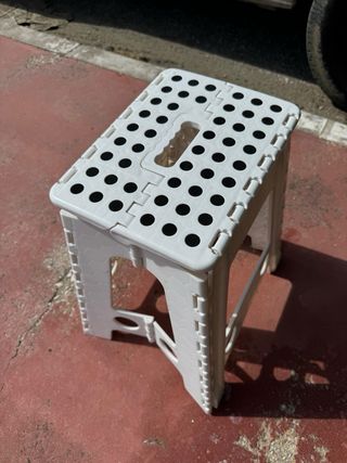 Taburete plegable en perfecto estado. Ideal para cualquier espacio. - Diseño moderno y elegante. - Estructura resistente y estable. - Fácil de plegar y guardar.