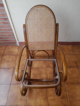 Silla balancín de estilo nórdico con un diseño moderno y elegante. - Asiento ergonómico. - Patas de madera combinadas con estructura metálica.