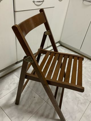 Se vende 2 sillas pegables de madera, en muy buen estado. Se vende las 2 sillas por 28 € por separado cada una 16 € Medidas: alto 73 cm x 43 cm ancho