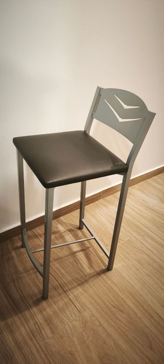 Se venden 4 sillas/taburetes de metal con asiento de cuero sintético. Es una pieza elegante y cómoda, ideal para cualquier espacio. - Estructura metálica resistente. - Asiento acolchado de cuero sintético.