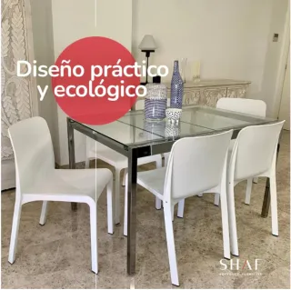 Conjunto de cinco sillas de comedor con un diseño elegante y moderno. Están en buen estado y listas para dar un toque especial a tu comedor. - Polipiel - Estructura de madera. - Poco uso