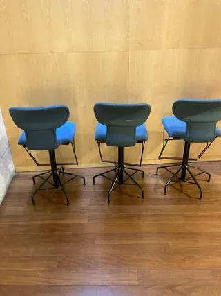 Tres taburetes silla de la marca Varius, diseño de Oscar Tusquets.Fabricados en una combinación de tela azul y metal.Diseño de Oscar Tusquets modelo Varius y producida por CASAS en 1983.Taburete inspirado en la forma de un violín Stradivarius.Taburete polivalente, referencia en la historia contemporánea del diseño español.El más reconocido, más vendido y que mejor ha resistido el paso del tiempo.Ideal para mesas dibujo y barras o islas de cocina, regulable.Su estado es aceptable pero requiere cierta reparacion o ajuste, puede faltar algun tornillo. producto original y de coleccion que a pesar de su uso,mantiene su valor original.