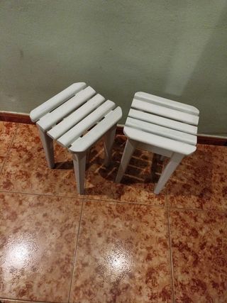 Se venden dos taburetes de madera. Son pequeños y están pintados de blanco. - Ideales para cualquier estancia de la casa. - Se encuentran en buen estado. Se venden juntos o separados dos 20e 10e uno