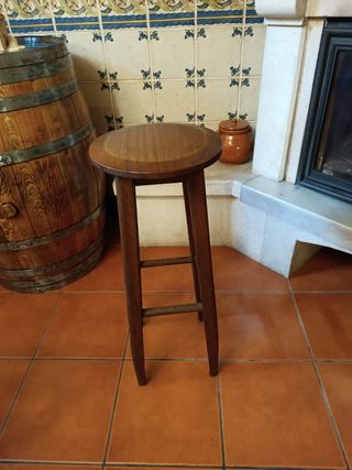 Taburete alto con un diseño clásico y elegante. - Asiento redondo. - Patas robustas con travesaños para mayor estabilidad. Medidas: 79 cm de altura Dispongo de 4 unidades. 20€ la unidad