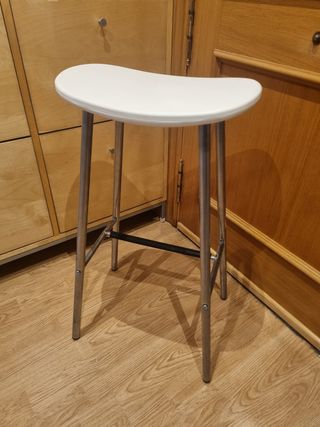 Vendo taburete WOLTU, nuevo y en su caja, color blanco y fabricado con materiales de primera calidad. - Diseño ergonómico con respaldo bajo y reposapiés. - Asiento cómodo y duradero, relleno de espuma de alta densidad. - Patas de madera maciza, estables y resistentes. - Medidas: 38,5 x 33 x 75 cm. - Peso: 10 kg cada uno.