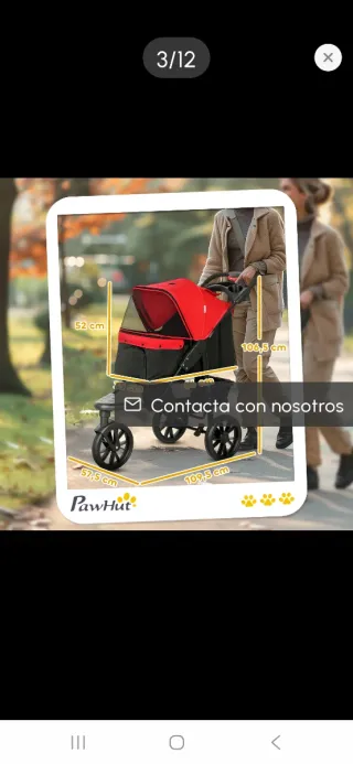 Cochecito para transportar mascotas, ideal para perros o gatos pequeños. - Estructura resistente y segura. - Diseño plegable para fácil almacenamiento. - Amplia capota para protección. - Cesta inferior para accesorios.