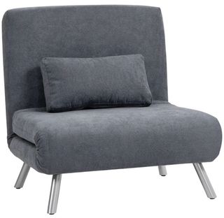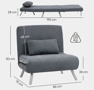 Este sillón se transforma fácilmente en una cama, ideal para espacios reducidos. - Tapizado en tela. - Patas metálicas.