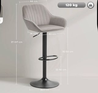 Conjunto de dos taburetes modernos y elegantes, perfectos para tu cocina o barra. - Asiento acolchado con diseño capitoné. - Base y columna cromadas. - Altura regulable mediante palanca. - Reposapiés circular.