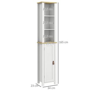 Columna de baño con un diseño moderno y funcional. Combina acabados en blanco y madera para un toque elegante. - Estructura principal en blanco. - Detalles superiores y estantes en madera.