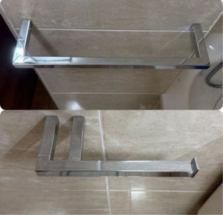 Dos prácticos accesorios para el baño, en metal cromado, con un diseño sencillo y elegante.