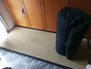 Tatami de gran tamaño, perfecto para yoga o meditación. - Medidas: 70 cm de ancho x 200 cm de largo. - Grosor: 5.5 cm. Cuento en total con 3 tatamis y un futon de 140x200 que puedes comprar juntos y negociar un mejor precio. Puedo entregar en mano o podemos aprovechar el nuevo formato de envio de wallapop para muebles.