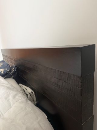 Lo puedo transportar! Conjunto de cama estilo tatami con dos mesitas de noche a juego. - Base de cama de madera. - Cabecero tapizado en piel. - Mesitas de noche con cajones. Muy sólida, tiene unos gruesos montantes.