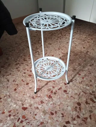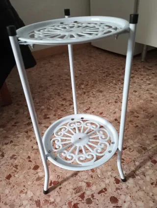 Macetero de aluminio creo,con dos compartimientos para poner dos macetas, regalo una maceta de plástico grande las dos cosas en buen estado