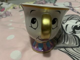Adorable taza de cerámica inspirada en Chip, el personaje de La Bella y la Bestia. - Diseño detallado con rostro y detalles dorados. - Base con adornos en tonos rosa y azul. Nunca se ha sacado de su caja. se envía con ella y el embalaje interior.