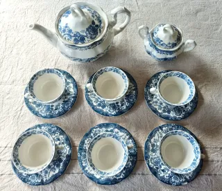 Juego de te Tonquin by Myott.Juego de café de 12 servicios( una taza tiene un chip),porcelana fina... made in England...Staffordshire...tetera 24 cm de alto y 22 cm de largo....taza 5.5 cm de alto y 7 cm de diámetro...plato 12 cm de diámetro...lechera 10 cm de alto y 11 cm de ancho...azúcar 11 cm de alto y 14 cm de ancho