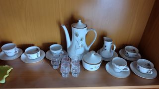 Se vende vajilla decorativa con: 6 tazas de café 6 platos 1 lechera 1 cafetera 1 azucarero PRECIO NEGOCIABLE!!!