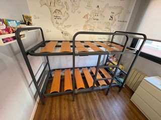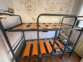 Litera resistente con estructura de metal y base de madera. - Base de listones de madera. - Estructura de metal. - Diseño de dos niveles. - medidas 90 x 190cm Como nueva