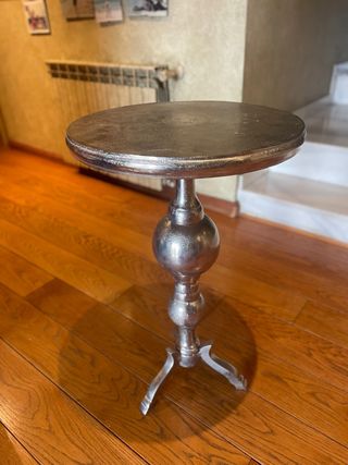 Mesita auxiliar de hierro plateado.