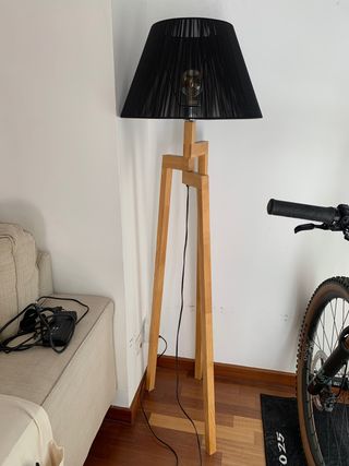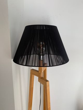 Lámpara de pie madera y tela negra