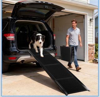 Rampa extensible para ayudar a perros a subir a coches, escaleras o sofás. Es plegable para un fácil almacenamiento y transporte. - Longitud extendida: 170cm - Ancho: 44cm - Altura plegada: 47.5cm - Profundidad plegada: 14cm