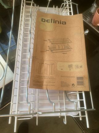 No nos va bien por medidas de armarios. Comprado en el leroy Merlin. Práctico escurridor de platos y vasos de la marca Delinia. Ideal para organizar tu cocina. - Color blanco. - Medidas: 56.8 cm de largo, 25 cm de alto y 7.5 cm de profundidad.