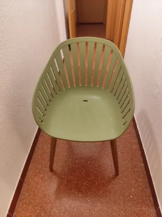 Silla de diseño moderno, ideal para exteriores. Solo tengo 1 unidad. - Asiento y respaldo de plástico. - Patas de madera.