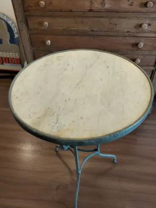 Mesa bar antigua metal y mármol