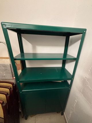 Estantería modelo Kolbjörn de Ikea con un diseño moderno y funcional. - Estructura robusta. - Acabado en color verde. - Dos baldas para almacenamiento. - Base con armario.