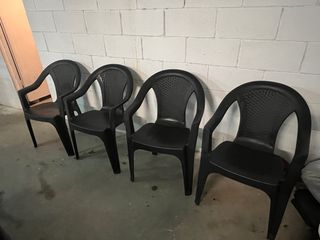 Conjunto de cuatro sillas de plástico, usadas 1 sola vez. Para jardín o terraza. diseño moderno y resistente. ideales para exteriores. - Apilables para un fácil almacenamiento. - Estructura robusta y duradera. - Acabado texturizado en el respaldo.