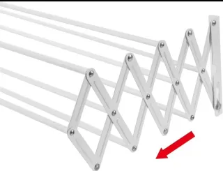 Tendedero extensible de 80 cm, ideal para optimizar el espacio en tu hogar. Su diseño plegable permite guardarlo fácilmente cuando no está en uso. - Mecanismo de tijera para extensión. - Fijación a la pared robusta.