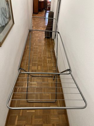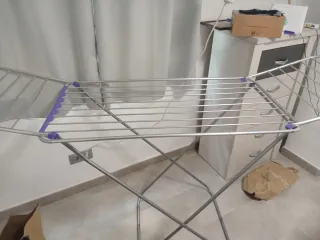 Tendedero plegable, perfecto para usar tanto en interiores como en exteriores. Su diseño permite guardarlo fácilmente cuando no está en uso. - Estructura metálica. -Esta en muy buen estado. -Se puede negociar el precio. -Lo vende por falta de espacio.