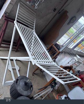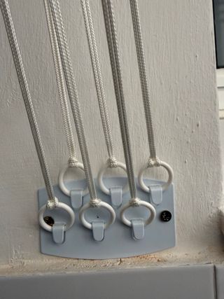 Set 2 L hierro blanco + 6 poleas + cuerda Se encuentra con una distancia de 3 m en la foto. Lo coloque hace dos meses y me mudo, todo nuevo me costo 60€.