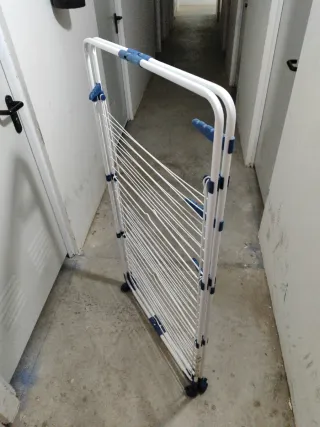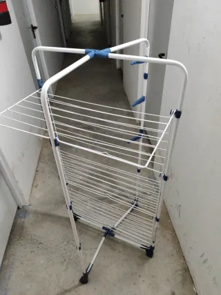 Está usado 2 veces, no tiene oxidos.Tendedero vertical con alas desplegables para maximizar el espacio de secado. Es fácil de plegar y guardar. - Estructura principal de metal. - Detalles y uniones de plástico.