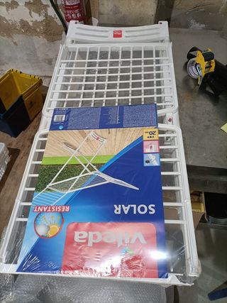 ⚠️ LEER ATENTAMENTE: ATENCIÓN: Presenta marcas de oxidación y tiene varias barras rotas, de ahí su precio. ⚠️ 🏷️ Marca: Vileda 🔖 Modelo: 163245 🎨 Color: plateado 📝 Descripción: Tendedero Vileda con varillas gruesas antipliegues y estructura de acero y aluminio. Ideal para secar ropa sin arrugas, con patas antideslizantes para mayor estabilidad. Perfecto para uso doméstico. LPNHK271417887 - C002 🔑 Palabras clave: tendedero, aluminio, acero, antideslizante, antipliegues 🔗 Relacionadas: tendedero ropa, secado, estabilidad, varillas gruesas, patatas antideslizantes, alumix, articulación soldada, marco acero, espacio tendido, uso d...