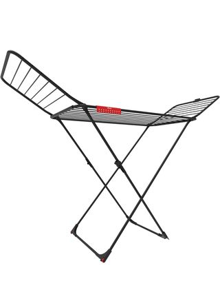 Tendedero plegable de metal, ideal para optimizar el espacio en tu hogar. Su diseño permite guardarlo fácilmente cuando no está en uso. - Estructura resistente. - Acabado en color negro.