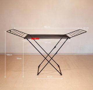 Tendedero de ropa con alas, ideal para secar la colada. - Diseño plegable para fácil almacenamiento. - Estructura robusta para mayor durabilidad. - Superficie de secado amplia - Estructura metálica - -Plegado: 130 x 55 cm -Abierto: 180 x 105 y 90 (alto) x 55 cm aprox.