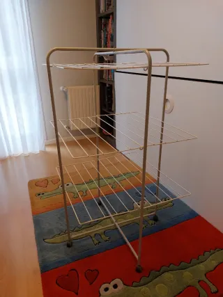 Está usado 2 veces, no tiene oxidos.Tendedero vertical con alas desplegables para maximizar el espacio de secado. Es fácil de plegar y guardar. - Estructura principal de metal. - Detalles y uniones de plástico.