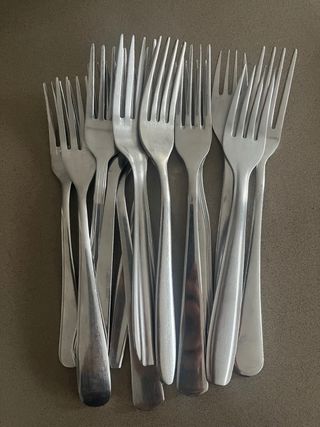 Conjunto de tenedores de metal. - Diseño clásico y elegante. - Aptos para lavavajillas. 1€ dos tenedores , no se hace descuento , pedido mínimo 6 €