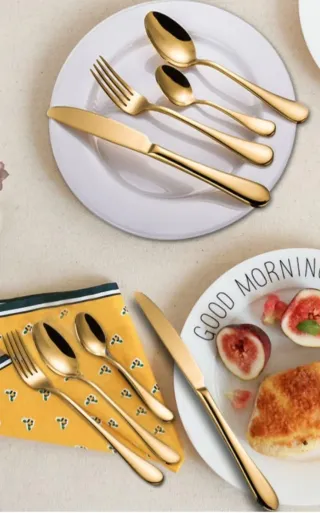2 Elegantes juegos de cubertería de 24 piezas cada uno, perfecto para cualquier ocasión. Con maleta dorada - Fabricado en acero inoxidable. - Acabado dorado brillante. - Incluye cuchillos, tenedores y cucharas.