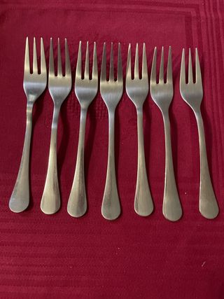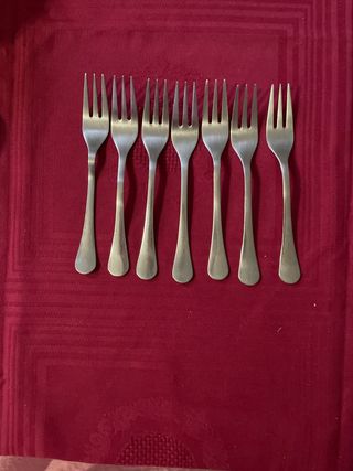 Juego de 6 tenedores de postre o lunch. Miden 13,5 cm. Acerco inoxidable.