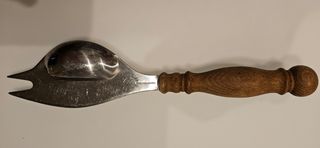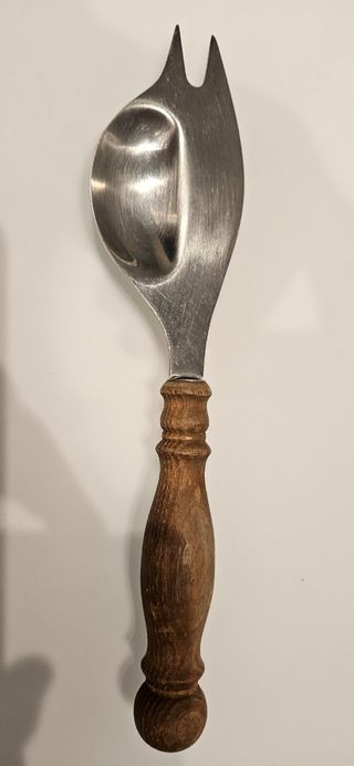 Cuchara-tenedor WMF Cromargan para la cocina. Acero inoxidable 18/10 con protección Cromargan y mango de madera. Medidas: 22 x 5 cm.