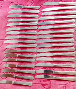 Vendo 12 cucharas grandes y 7 de postre,7 cubiertos grandes ,11 de postre tenedor,12cuchillos ,1cucharon ,una grande y tenedor trinchero, Está todo en perfecto estado,solo limpiar ,para darle brillo,