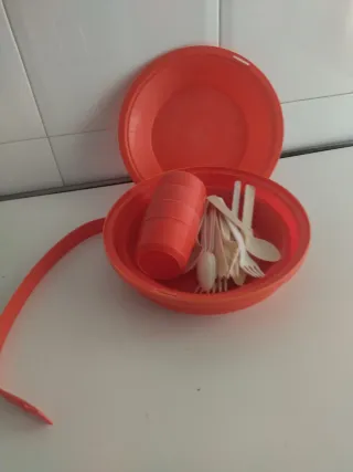 Set de vajilla para camping o picnic. - Incluye 6 platos y 3 vasos. Cucharas, cuchillos y tenedores de plástico.