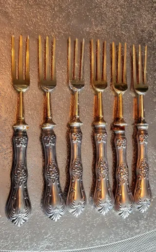 Conjunto de seis tenedores pequeños de la marca Dixon. - Diseño elegante y funcional. - Acabado plateado brillante. - Ideales para postres o aperitivos. Sin usar. No se hacen envios Entrega en mano en zona sur de Madrid. Utilizo washap: 646 91 22 71